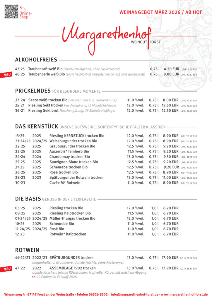 Die Weine & Sekte der Jahrgänge zwischen 2021 und 2023 stammen aus Trauben der Umstellungsphase zum ökologischen Weinbau. Alle Jahrgänge vor 2021 wurden nach den Richtlinien des kontrolliert umweltschonenden Weinbaus (KUW) erzeugt.